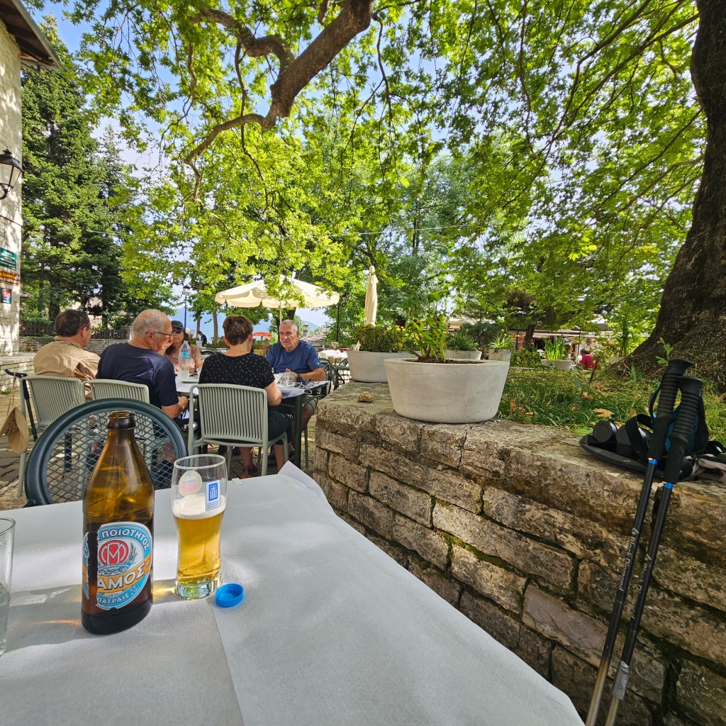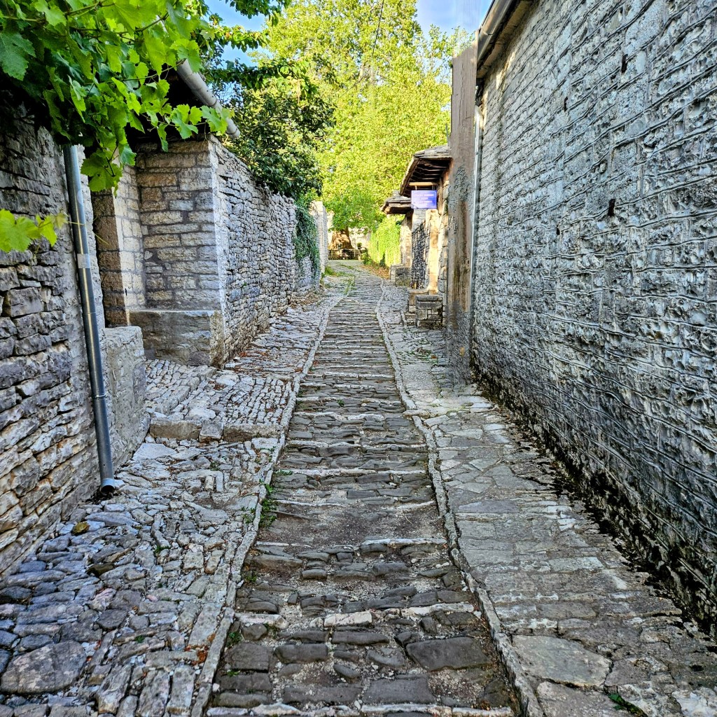 Since these villages in Zagoria were build long before cars and given their multiple levels being perched on the mountain sides, the town square isn’t accessible by car, just narrow cobblestones lanes that radiate out in seemingly random directions. In the case of Monodendri, the plaza circles around a giant plane or elm tree and a number of restaurants and cafes form the first circle then the church, a few hotels, the school, then houses as the village radiates out and up and down, as nothing is horizontal around here. The villages are primarily oriented to the southeast as winter is the most challenging time of year, or at least used to be back when there was snow.