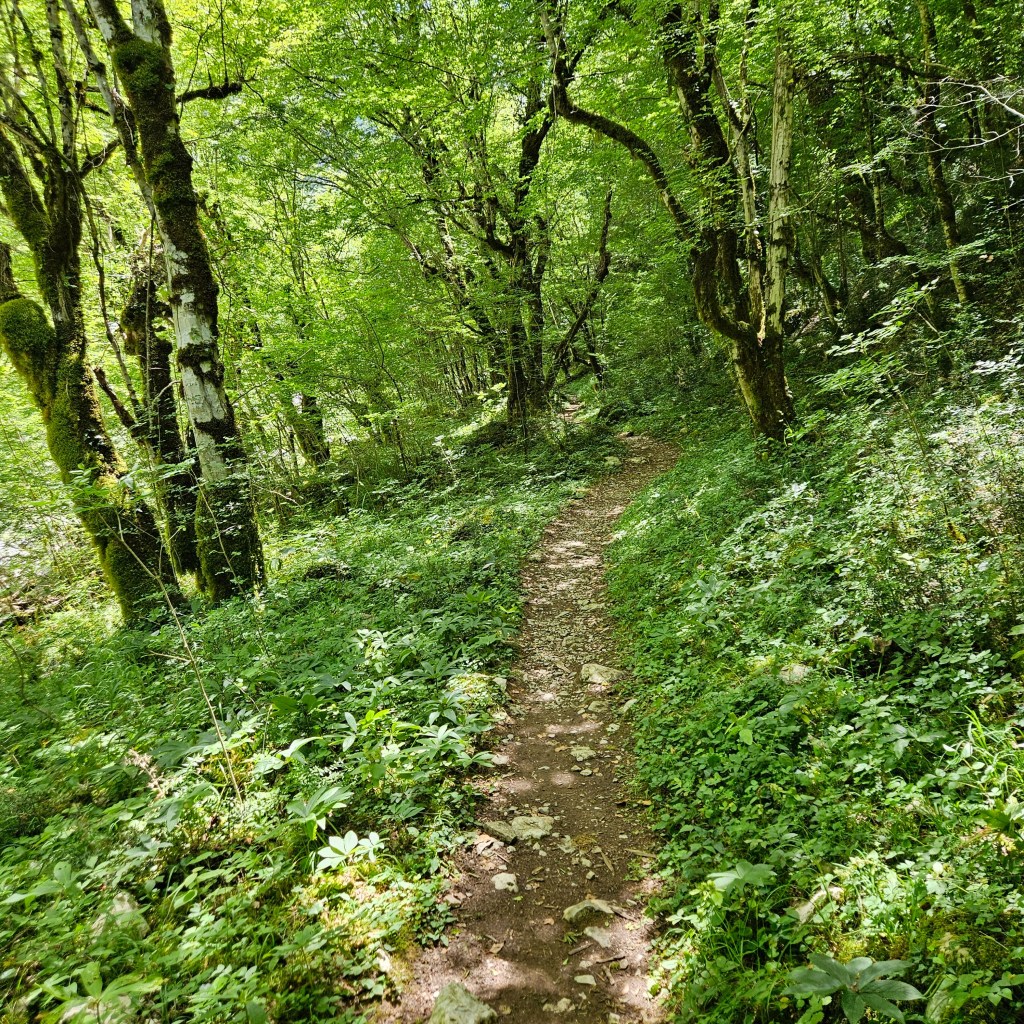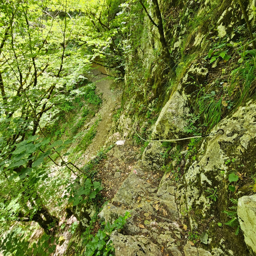I linger far to long by the water and it’s 11am by the time I really start hiking, stopping to take way too many pictures of the sheer grey cliffs with splotches of orange. The views are indeed spectacular as you wind in and out of the beech forest. Before long I start crossing paths with multiple groups of hikers all coming the other way and as I continue to gain elevation and encounter rough sections I begin to question my guy’s advice, maybe he just wanted to get the first taxi run out of the way.