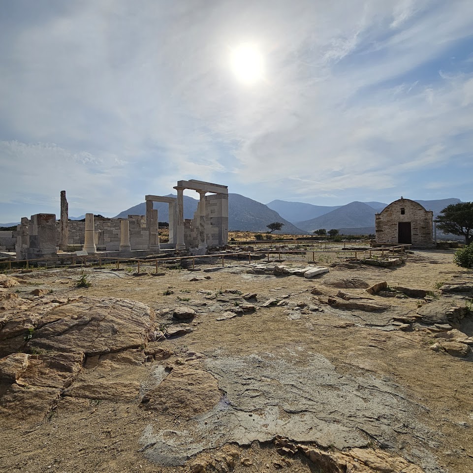Then there’s the temple of Sangri on the island of Naxos. The temple sits on a high rise amidst agricultural fields. Built around 530 BCE and dedicated to Demeter, the goddess of the harvest, the temple was torn down in the 6th century and the stones repurposed to build a Christian basilica. Recent excavations, however, reveal remnants of a much older open-air fertility cult, possibly even pre-dating the Bronze Age. It would seem that whatever religion is currently popular, it’s the physical site itself, the land, the place that compels a spiritual allegiance.